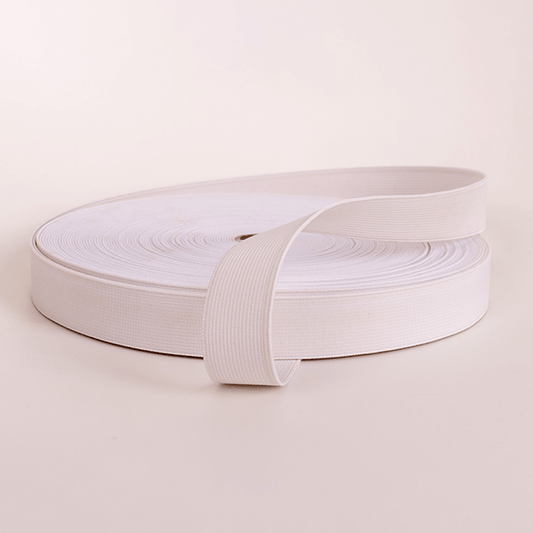 25mm White Woven Elastic - 25m Roll